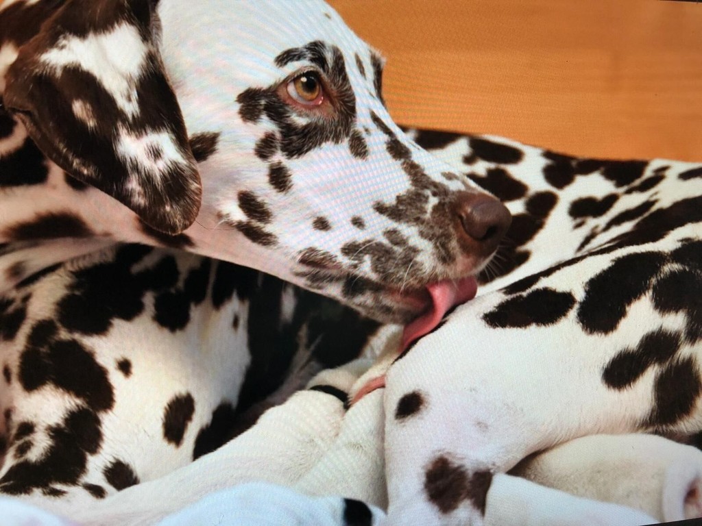 Unsere Hündin Dot4Dot Espicially for you hat die Geburt völlig instinktsicher und